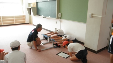 今週は体力テスト週間です。総合学習室では、長座体前屈や握力の計測をします。握力は20kg台の子もいれば10kg未満の子もいます。