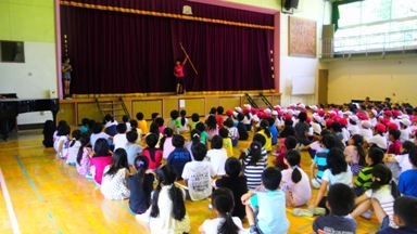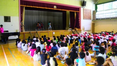 集会委員によるゲーム集会です。4人の中で一人だけ違っている人を当てます。担当する集会委員のチームワークがとてもよく、次から次へとテンポのよい集会でした。