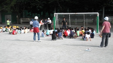 早朝から地震があるなど、いつ地震があってもおかしくない毎日です。BOPでも夕方にもしも大きな地震の発生したらを想定し、避難訓練がありました。遊んでいる途中ですが、静かに集まり先生の指示にしたがって動くことができました。