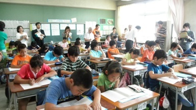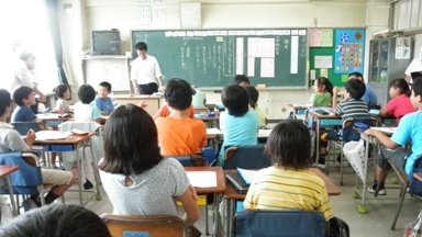 研究授業を5年3組で行いました。これから全学年で、学び合い高め合う児童の育成に向けた研究を進めていきます。人とのかかわりを通してさらに深く考え、自分の考えを練り上げていきます。