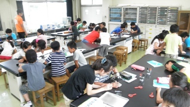 ミジンコの観察のため、顕微鏡を使っての学習です。顕微鏡の使い方について学びそれから自分たちで操作して観察します。ミクロの世界に驚いていました。