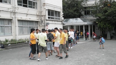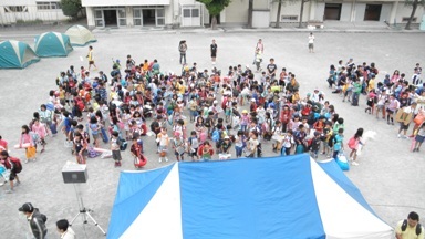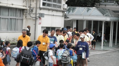 小雨が上がり、フィナーレは校庭でできました。この2日間は、参加した子どもたちの人数分の感動や思い出があります。おやじの会の皆さんにとって、子どもの喜びは何よりです。さらに、感謝の言葉は来年への大きなエネルギーになります。最後は恒例の一人一人とハイタッチしてのお別れです。お疲れ様でした。子どもたちはとてもよい顔をしていました