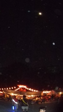 今年も恒例の瀬田商店会主催の納涼盆踊り大会がやってきました。暑い夏の夜にやぐらの提灯と和太鼓の音が瀬田の夏を演出します。恒例のビンゴ大会からスタートし、おやじバンドはC昇降口の上での演奏です。月夜の明かりも交わり、盆踊りにふさわしい夜です。