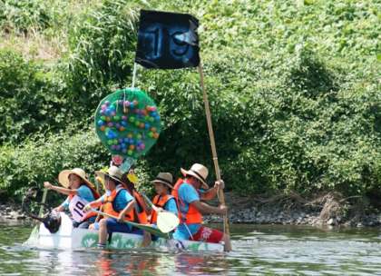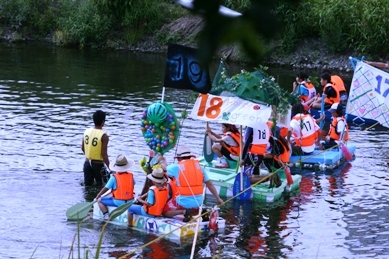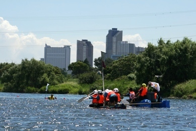 好天に恵まれ、予定通り、アドベンチャーin多摩川が開催されました。本校からは、4年生が2艇出場しました。川の流れが緩やかなため、一生懸命いかだをこいでもゴールまで約30分かかります。オールを30分こぐことは決して楽ではありませんが、チームワークでゴールを目指しました。アイデア豊富ないかだだったため、ゴール後はテレビ局から取材を受けるほどです。関係者の皆さんお疲れ様でした。そして応援の皆さん、暑い中ありがとうございました。