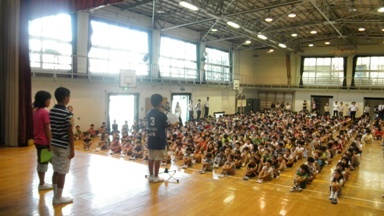 始業式の後には、転入生の紹介です。14名が瀬田小の仲間入りをしました。1学期終業式よりも9名多い554名在籍となります。
