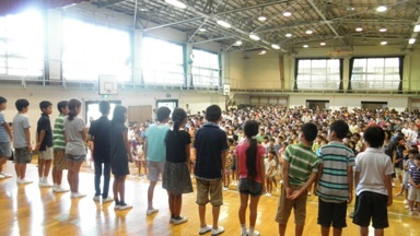 2学期始業式は、4年生のクラス代表の決意表明がありました。授業では集中して受けたい、学校一だれとでも仲よしのクラスにしたいなど、3人とも、発表の仕方も発表の内容も立派なあいさつでした。