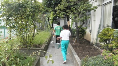 今日から瀬田中学校2年生1名の生徒が、本校で職場体験学習を3日間します。本校の卒業生ですが、働く立場で来ています。あいさつや返事、業務の責任感などを学んでいきます。