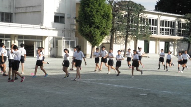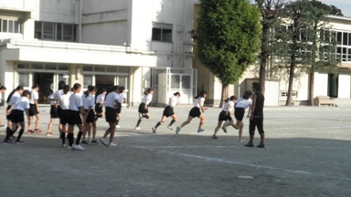 現在、瀬田中では、マンホール型トイレ設置と校庭改修のため、10月いっぱいまでグランドは使えません。10月1日には連合陸上競技会でせまっています。そこで、BOPの皆さんにも協力していただき、放課後の瀬田小の校庭を使ってもらいました。中学生らしい集中力と迫力を目にしたBOP帰りの1年生は、足を止めて見入っていました。