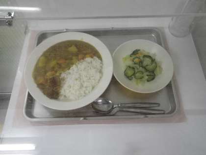 カレーライス 牛乳 福神漬 野菜の甘酢かけ