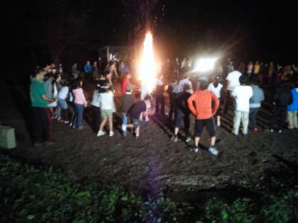 あたりはすっかり暗くなり、キャンプファイヤーを楽しんでいるところです。