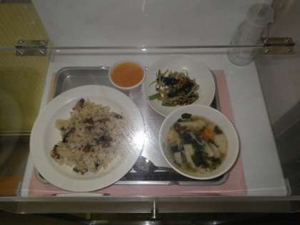 さんまごはん 牛乳 すまし汁 野菜のからしじょうゆかけ