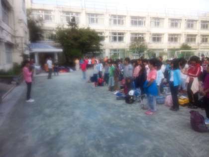 学校に到着し、帰校式をしている様子です。これから家に帰ります。