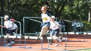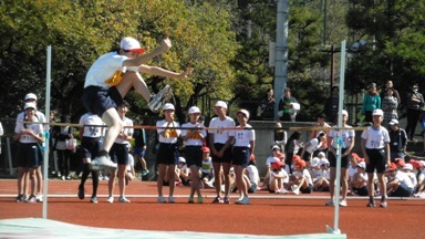 いよいよ競技開始です。女子の各種目がスタートしました。子どもたちには、学校出発の際に、自己ベストを出そうと呼びかけました。真剣に精一杯走り跳ぶ姿は、素晴らしいです。