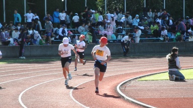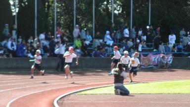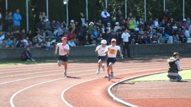 女子と男子の競技の間にリレーをします。男子2チームと女子2チームが出場しました。男子Aチームは、出場した22校の中で、トップとさほどかわらない会場第3位の記録でした。