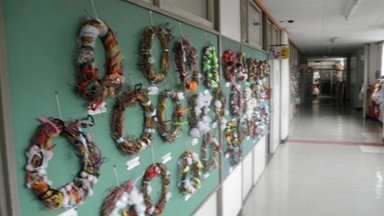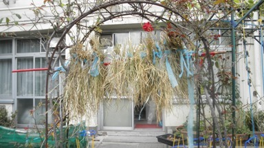 学校の様々な場所に秋の風景が広がってきました。5年の稲干し、そして1年のアサガオのつるで作ったリール、もちろん秋の自然もたくさんあります。
