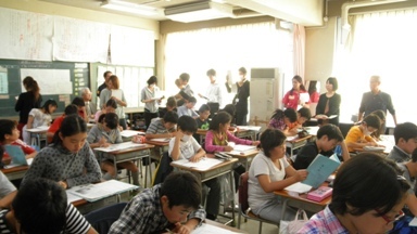 一昨日6年生は連合運動会で大活躍でした。今日は6年の研究授業日です。難しい学習内容でしたが、一人一人深く考えていました。また、友達の考えのよさにふれ、自分の考えを見なおしなど、その学びは真剣そのものです。