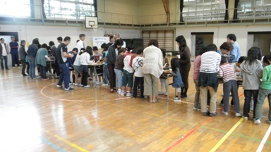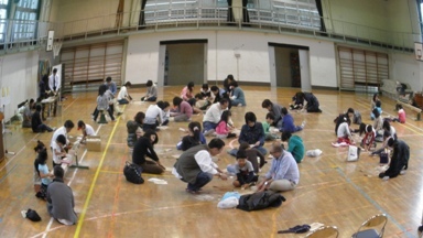 お話をうかがった後、角材からお箸を作っていきます。やすりで時間をかけて削っていきます。削るごとに手で木肌の感触や形を確かめながら作業を進めていきます。単調作業なのですが、これがどうして始めると止まらなくなる魅力があります。食べやすい箸ってどんな形だったかな、鉛筆みたいになっちゃった、まだまだ時間がほしいなど、およそ2時間が作業時間が大人も子どももあっという間になくなってしまいました。大人も子どもも夢中になって削りました。