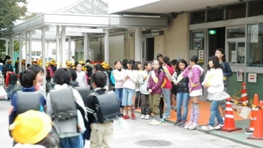 11月5日からは5年1組と1年1組による兄弟学級あいさつ運動です。3回目一番乗りです。