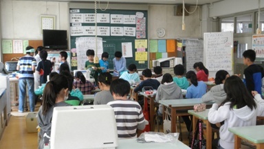 6年1組の家庭科の授業の様子です。学習発表会で出品する作品を真剣に仕上げていました。個人差がありますので、完成までには時間の違いがあります。この時間に間に合わないと、休み時間や放課後に取り組むことになります。