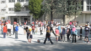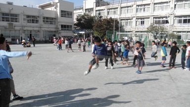 第一木曜日は月に1回の兄弟学級遊びです。昼休みから掃除の時間にかけて特別に30分近くも遊ぶ時間があります。上学年のリードで長縄跳びやおにごっこ、ドッジボールなどをして仲よく遊びます。