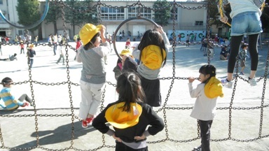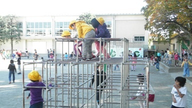 高いところには、黄色い帽子の1年生がよく集まっています。高いところが大好きなのでしょう。