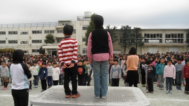 だんだんと寒くなってきました。月曜日は児童朝会があり、校長講和、看護当番長の先生から先週の生活目標についてや今週の生活目標について話があります。また、転入生があればその都度全校児童に紹介しています。今日は2人の転入がありました。