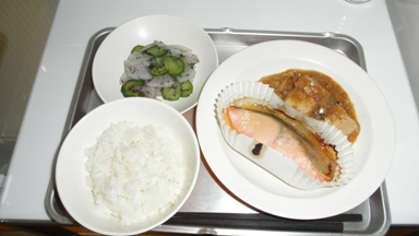 生姜(高知)、大根(千葉)、玉ネギ(北海道)、ニンジン(千葉)、キュウリ(茨城)、豚ひき肉(千葉)、鮭(北海道)、米(北海道)