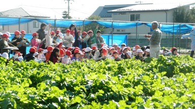 3年生は地域の特色として瀬田5丁目で農業を営む大塚さんのところに見学に行ってきました。5年生が育てている大蔵大根は、大分立派になっています。大塚さんから大蔵大根などについて学び、大蔵大根をはじめ野菜に興味をもった子がたくさんいました。