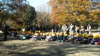 たくさんの保護者の皆さんに付き添いのご協力をいただきました。道路の歩き方や公園でのグループ活動など、ていねいに対応していただきありがとうございました。