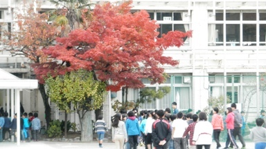 昨日まで3連休で一気に校庭の樹木は色づき始めました。後、空の青があればよいのですが、残念ながら曇り空でした。
