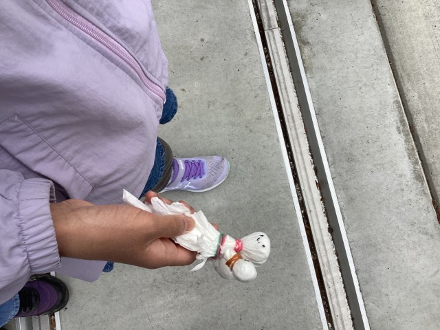 出発の時にてるてる坊主を見せてくれた子どもも。雨対策もばっちりです。