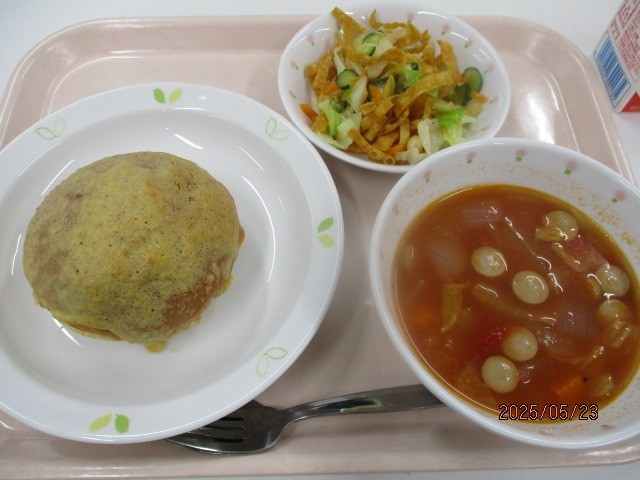 ビスキュイパン・ミネストローネ・カリカリ豆サラダ・牛乳