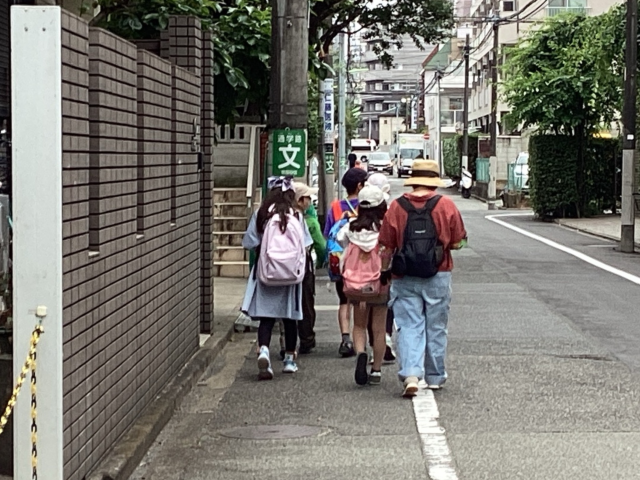 4年1組と2組が総合の学習「もっと安全瀬田の町」でフィールドワークにでかけました。