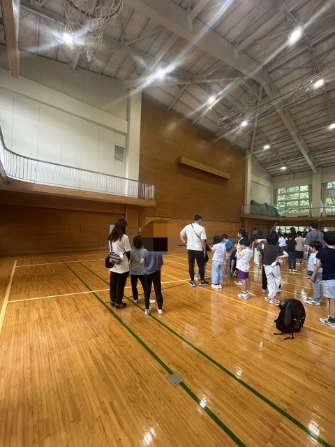 広い校庭の日陰で、美味しいお弁当を食べたあと、体育館で開園式を行いました。