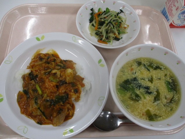 キムチ丼・塩ナムル・かきたま汁・牛乳