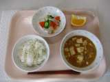 [献立] 麦ごはん 牛乳 家常豆腐(ジャージャンドウフ) かぶときゅうりの甘酢...