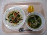 [献立] ビビンバ 牛乳 ワンタンスープ くだもの(ネーブルオレンジ) [食...