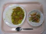 [献立] カレーライス 牛乳 こんにゃくサラダ [食材] 米:山形県 じゃ...
