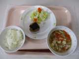 [献立] 深川めし 牛乳 かみなり汁 厚揚げの煮びたし [食材] 米:山形...