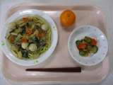[献立] 五目あんかけ焼きそば 牛乳 野菜の中華味 くだもの(みかん) [食...