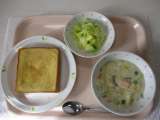 [献立] メープルトースト 牛乳 サーモンチャウダー りんご入りサラダ [食...