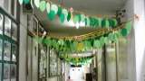 職員室前の廊下に垂れ下がったたくさんのほめほめの葉へのご協力ありがとうございま...