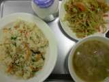 ご飯 牛乳 豆腐の五目炒め じゃこサラダ ☆今月は、白いご飯の日、様々な銘柄の...