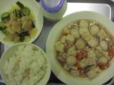 菜飯 牛乳 ホタテ入りジャンボ餃子 チャーホーサイ ☆今日のジャンボ餃子は、ほ...