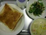 シナモントースト 牛乳 クリームスープ ほうれん草サラダ ☆今日はみんなが大好...