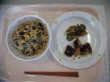 [献立] きつねうどん 牛乳 ししゃもの二色揚げ 野菜のごまみそかけ みかん ...