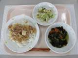[献立] 豚丼 牛乳 すまし汁 野菜の塩こんぶかけ [食材] 米:山形県 ...