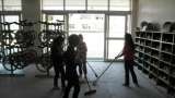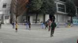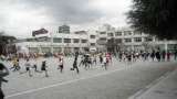 本校の校庭の土の粒子は小さく軽いため、昇降口は休み時間が終わるたびに乾いた土だ...