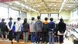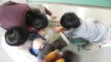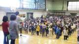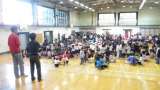 ゲーム集会での様子です。集会委員の言う言葉の文字数分の人の輪を作ります。例えば...