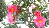 新校舎道路側にあるツバキが咲きはじめました。赤と緑のクリスマスカラーです。
